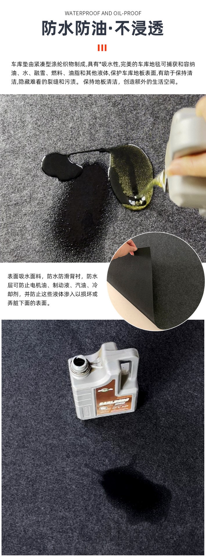1、 工业制造用于所有可能出现液体泄漏或油类和化学品储存配送的地方,包括仓库区、机器和管道周围、油箱和设备附近、火车和卡车下面、阀门附近、飞机下面、工作台等等。